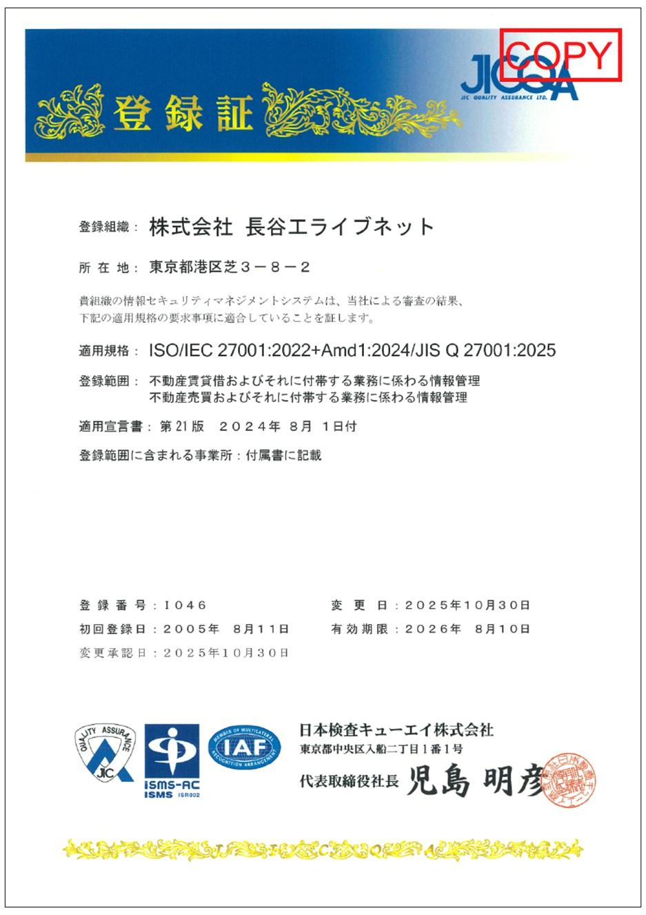 ISO/IEC27001 登録番号:I046